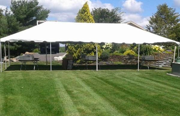 Frame tents are more open compared to the pole tents. There are no poles going down the center. They are self supporting so can be installed on most surfaces such as concrete, blacktop, gravel and grass. The frame tent still needs to be weighted down to the ground by using stakes or concrete blocks. Frame tents are much more versatile than the pole tents..