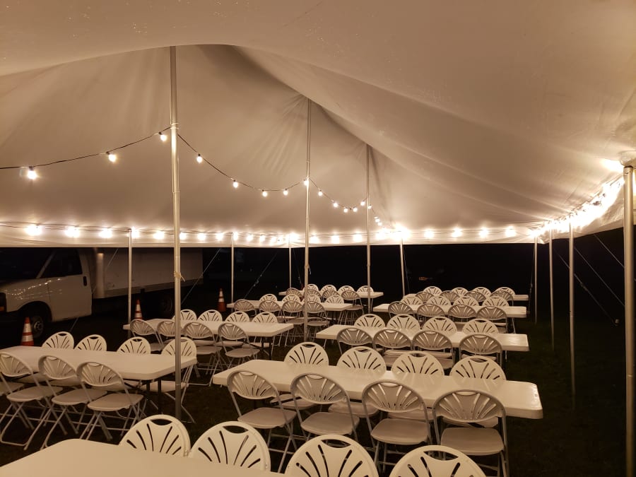 Package includes 80 feet of bulbs. Enough to cover the border of the tent.