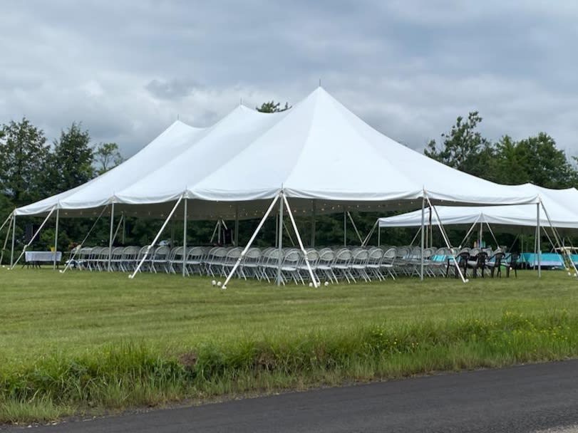 A pole tent is a tent that is held up by tension, utilizing stakes to hold tension. This requires poles in the center of the tent, thus loosing some of the floor space.