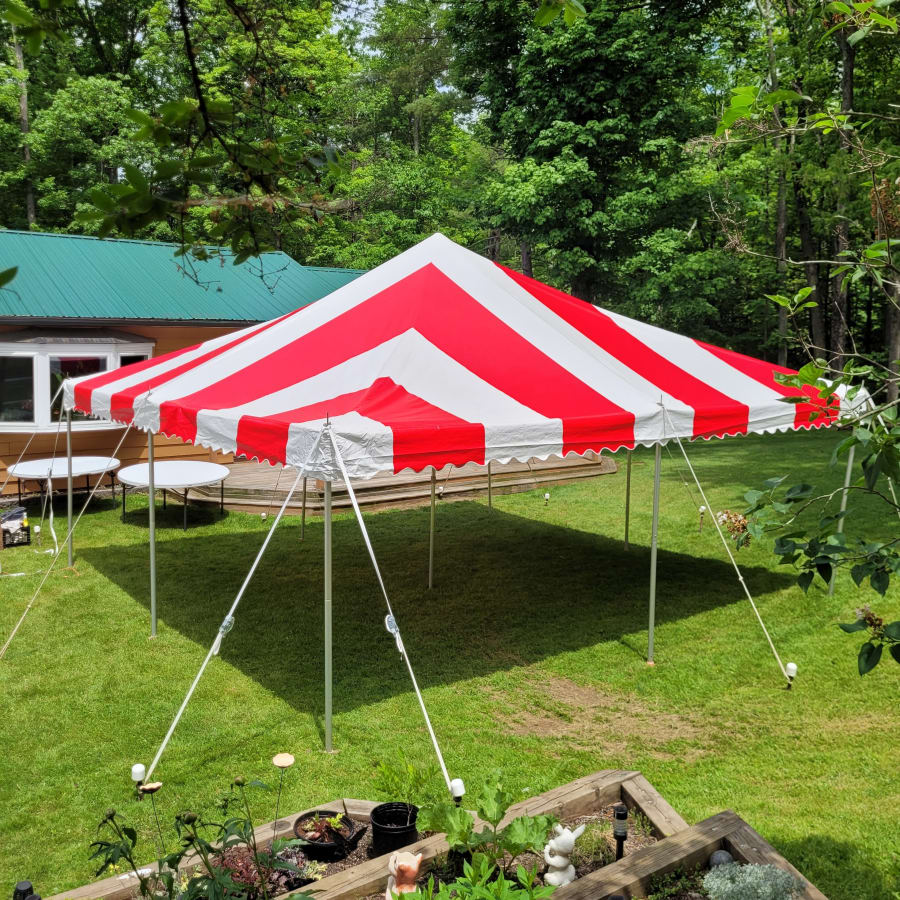 Don't settle for ordinary event tents – elevate your celebration with the 20 x 20 red/white pole tent today!